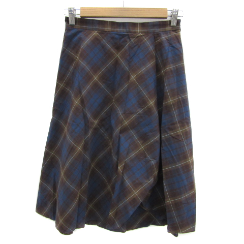 【中古】インディヴィ INDIVI フレアスカート ミモレ丈 チェック柄 38 M 紺 ネイビー 茶 ブラウン /YS3 レディース