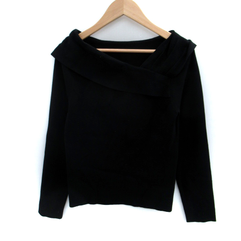 【中古】ストロベリーフィールズ STRAWBERRY-FIELDS カットソー 長袖 アシンメトリーネック 黒 ブラック レディース