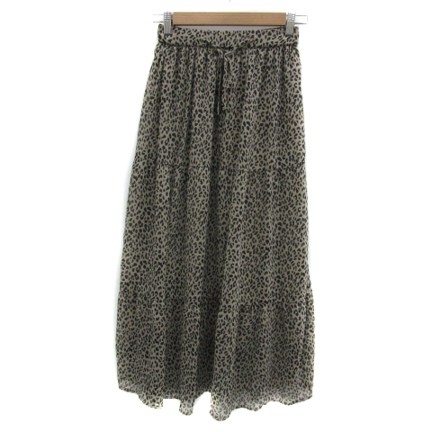 【中古】ディスコート フレアスカート ギャザースカート ヒョウ柄 レオパード柄 イージー F ベージュ 黒 レディース