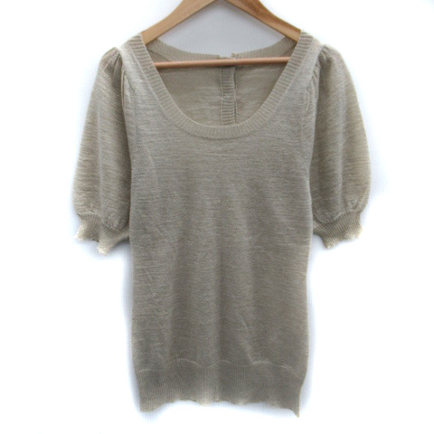 【中古】ジルバイジルスチュアート カットソー 半袖 ラウンドネック ラメ リボン モヘヤ混 F ベージュ