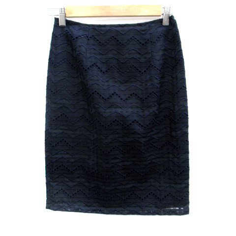 【中古】ナチュラルビューティーベーシック タイトスカート ひざ丈 刺繍 レース S 紺 ネイビー