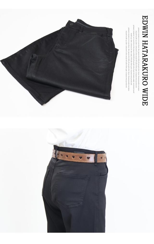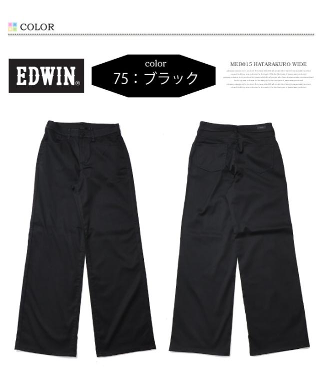 EDWIN エドウィン レディース ハタラクロ ワイド パンツ ストレッチ ボトムス 仕事着 ロングパンツ 送料無料 ミスエドウィン MEB015 ブラック 黒