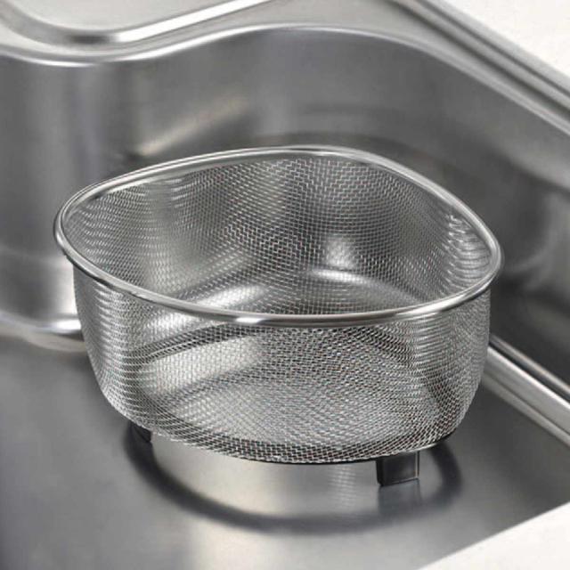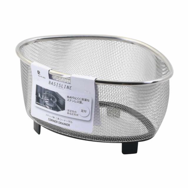 三角コーナー ベーシスライン ステンレス製 三角コーナーザル ( 生ゴミ入れ シンクポケット ゴミかご 流し台ゴミ箱 生ゴミ受け コーナーダストポケット シンク 流し台 ゴミ箱 生ゴミ 残飯 入れ 足付き ステンレス ぬめりにくい )