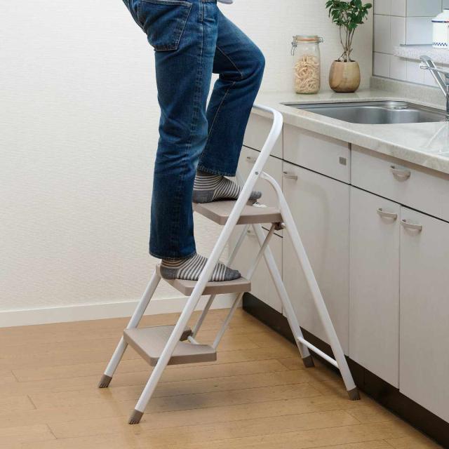 脚立 コンパクト 踏み台 3段 折りたたみ ホワイトラテ ( ステップ台 踏台 おしゃれ 収納 はしご 耐荷重120kg ステップ 三段 持ち運び 乗降 乗り降り 滑り止め 介護 子供 diy 洗面所 キッチン )
