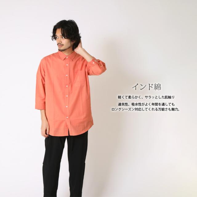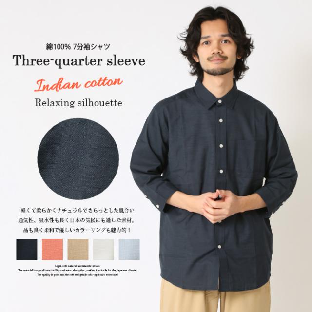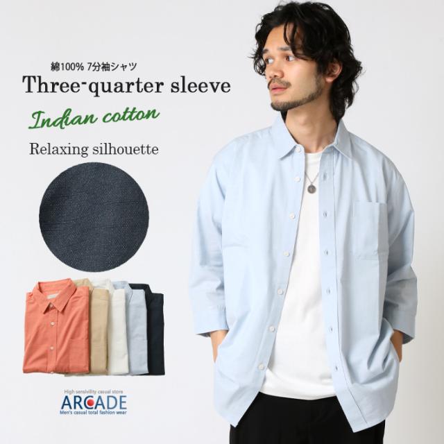 7分袖シャツ メンズ 春 七分袖シャツ インド綿100% コットンシャツ 半端袖シャツ 無地シャツ 白シャツ