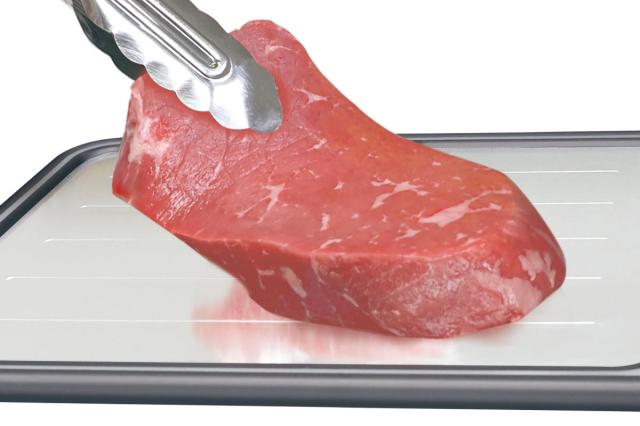 ●アルミの熱伝導を利用して凍った食材を置くだけで、ムラなく、ドリップも少なく解凍できます。