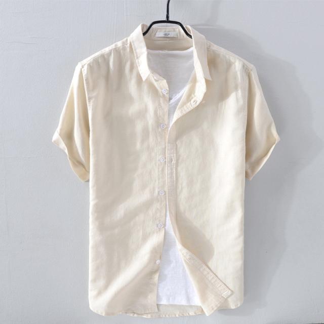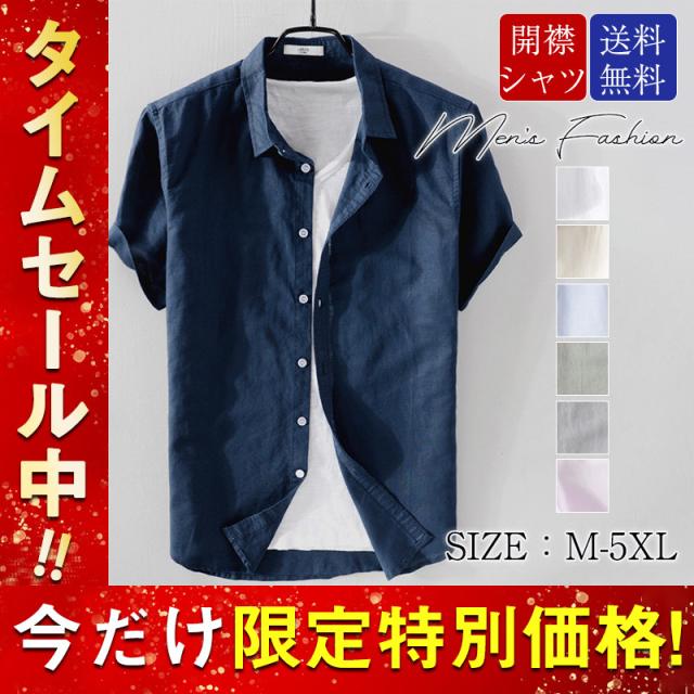 半袖シャツ メンズ 夏 カジュアルシャツ 開襟シャツ 綿麻 スリネンシャツ ボタンダウンシャツ 涼しい 無地 羽織 夏服 お兄系