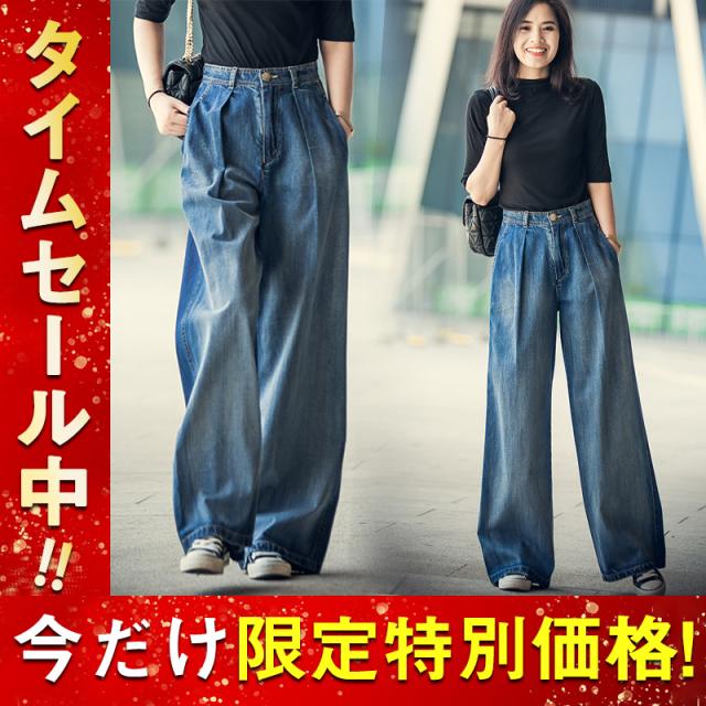 ワイドパンツ レディース 春 夏 ワイドデニム デニムパンツ 体型カバー 春夏 ジーンズ ガウチョパンツ 大きいサイズ 美シルエ