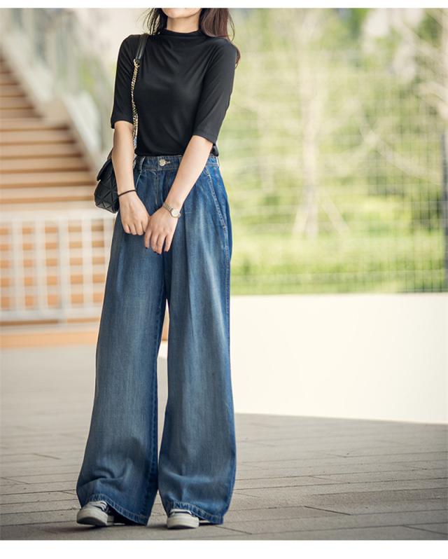 デニムパンツ レディース ワイドパンツ 楽ちん ゆったり きれいめ おしゃれ 春 夏 秋 体型カバー 着痩せ 美脚 カジュアル 薄手 可愛い 大人気 春秋 大きいサイズ 美脚 ロングパンツ ロング 太め 無地 ルーズ ユーズドデニム ワンウォッシュ ブリーチデニム 体型カバー