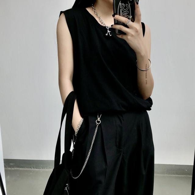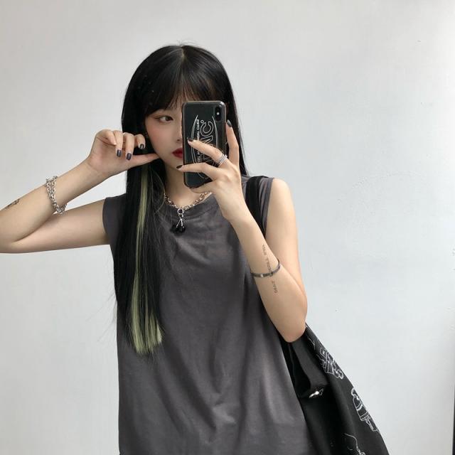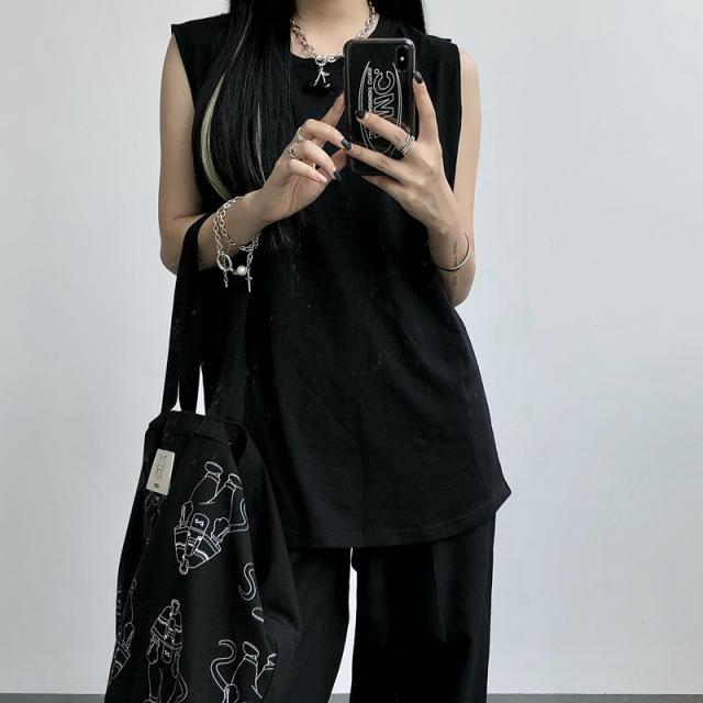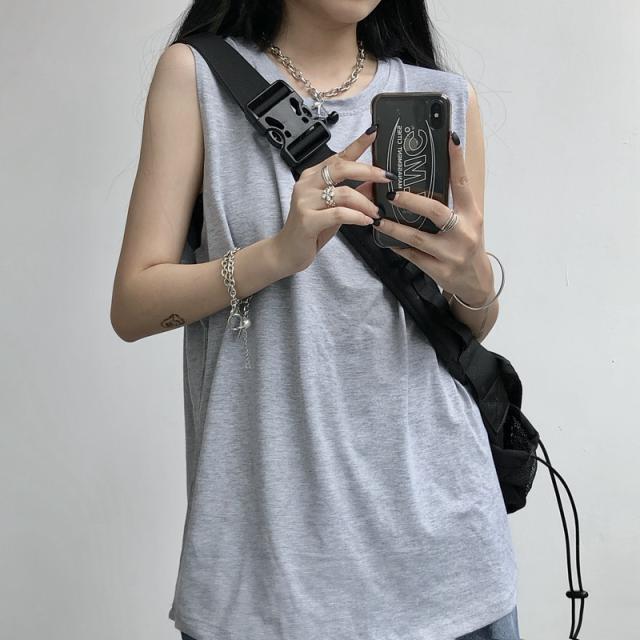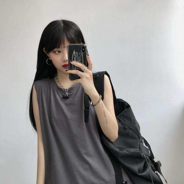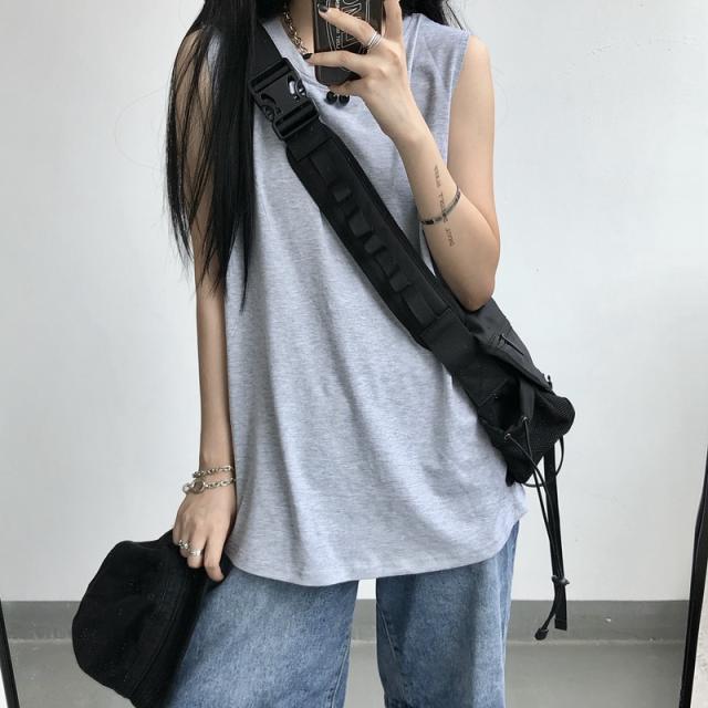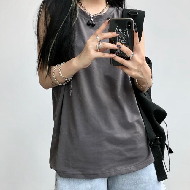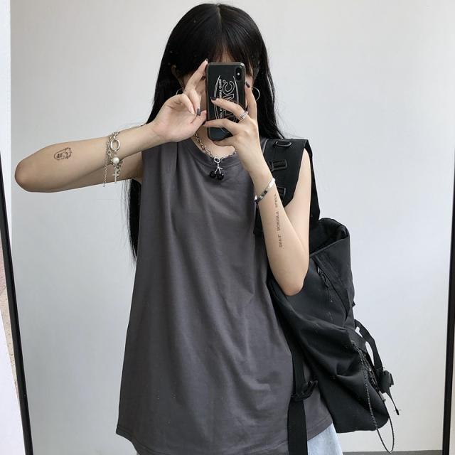 夏新作 タンクトップ レディース ノースリーブ トップス 袖なし Tシャツ ゆったり 薄手 重ね着 体型カバー シンプル 無地 イ