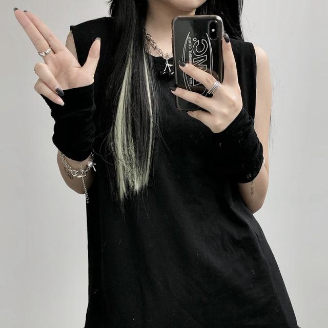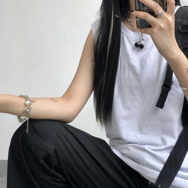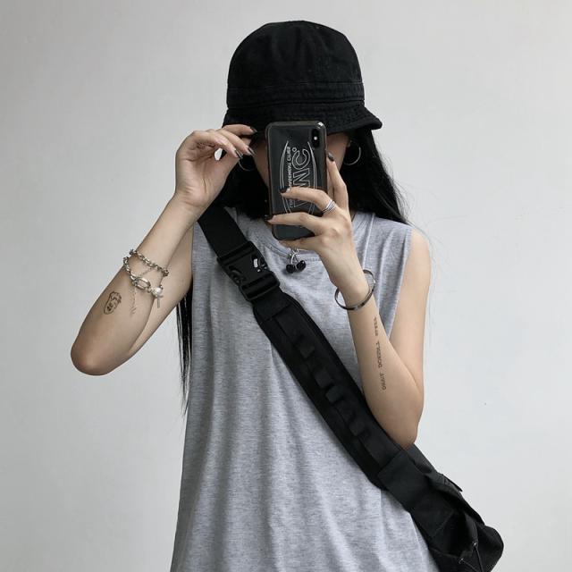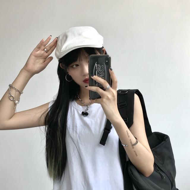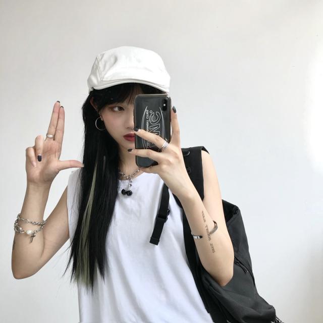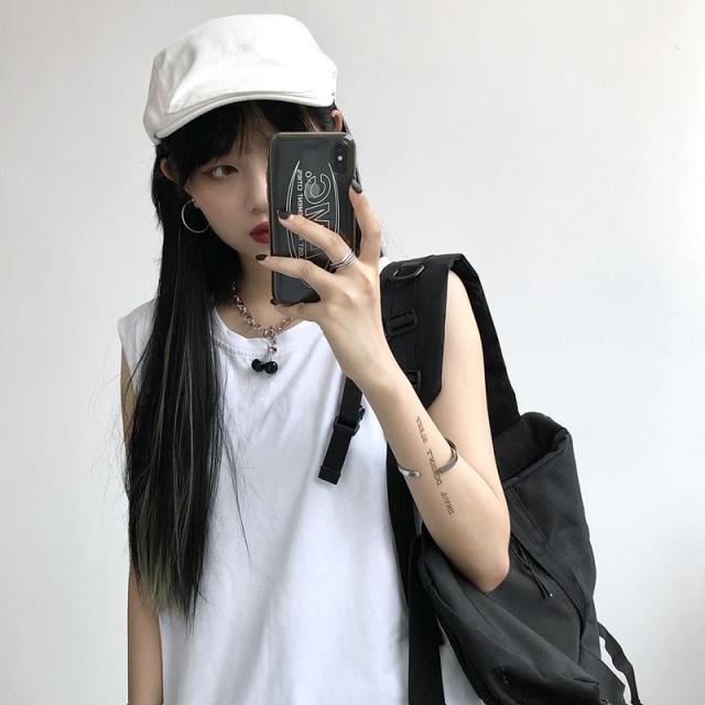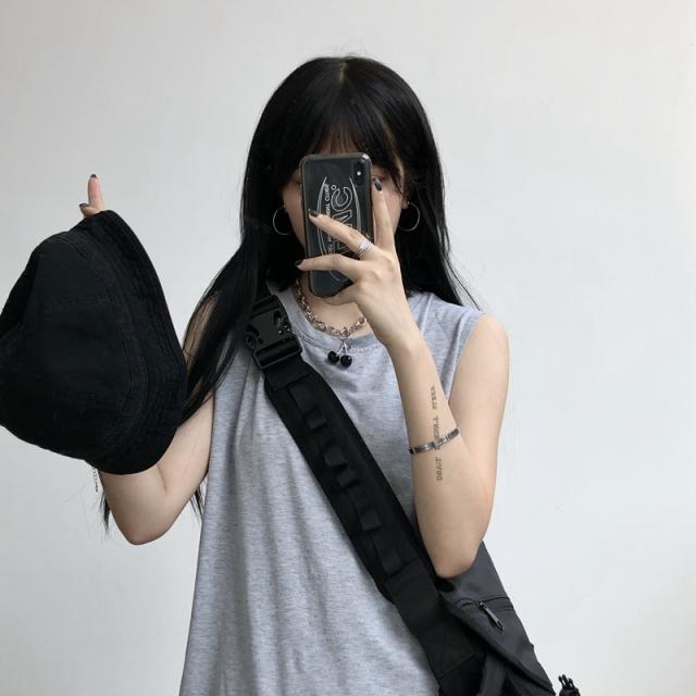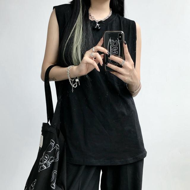 夏新作 タンクトップ レディース ノースリーブ トップス 袖なし Tシャツ ゆったり 薄手 重ね着 体型カバー シンプル 無地 イ