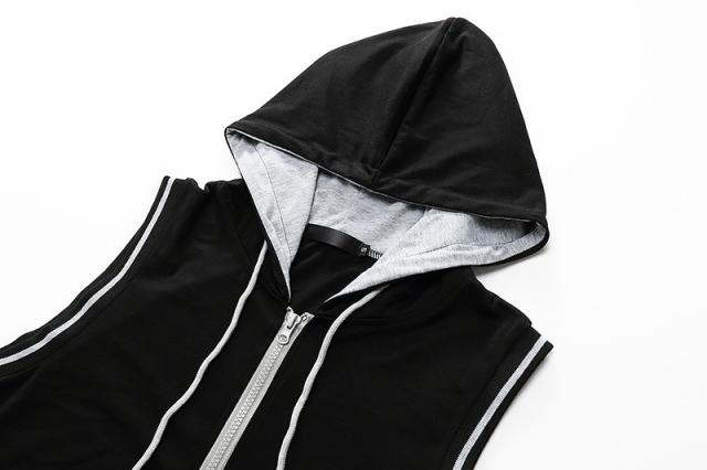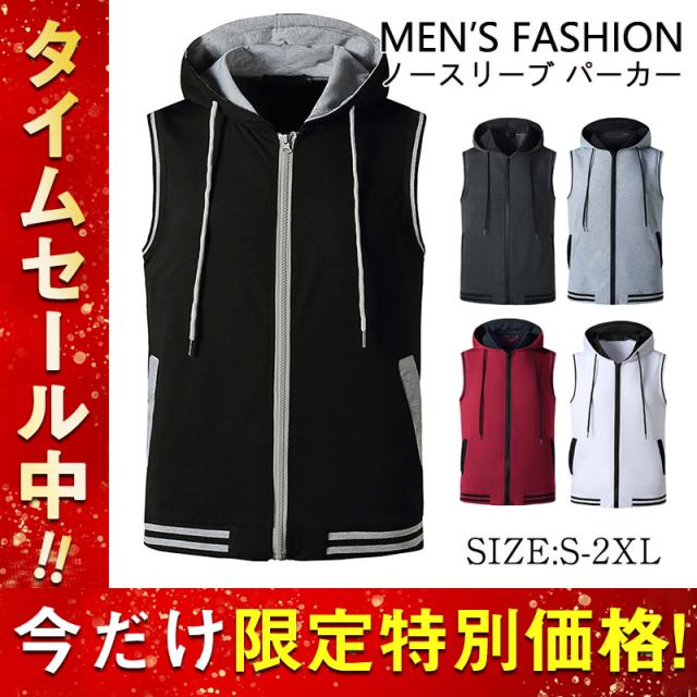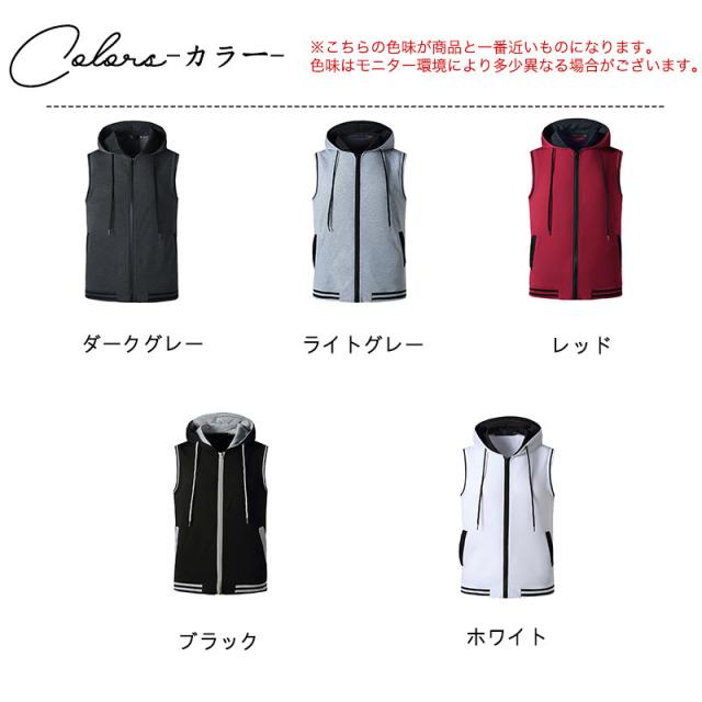 ノースリーブ パーカー メンズ フード付き パーカーベスト チョッキ 無地 トップス 重ね着 スウェット タンクトップ 夏パーカー