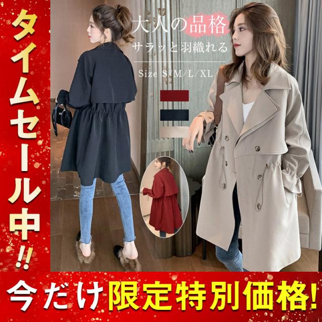 トレンチコート レディース スプリングコート 長袖 春服 ミドル丈 アウター 大きいサイズ カジュアル 韓国風 防風 卒業式 服