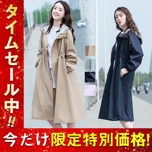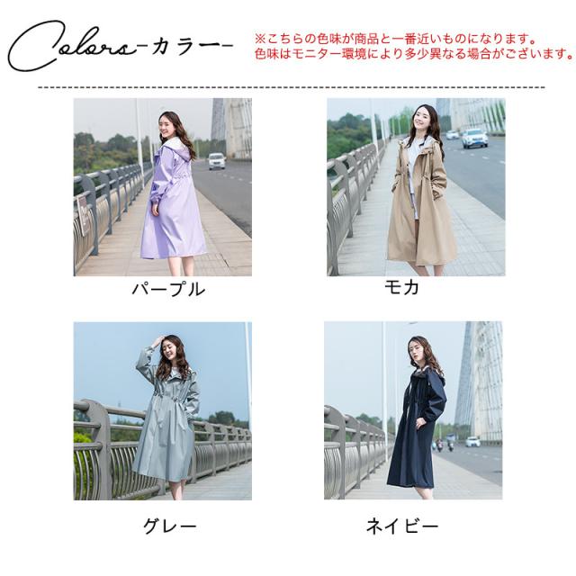 レインコート レディース トレンチコート風 レインウェア フード付き 雨具 Aライン ロング丈 自転車 通勤 おしゃれ 可愛い