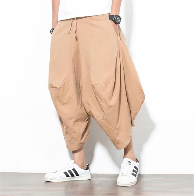 サルエルパンツ メンズ 綿麻 ズボン 長ズボン 綿麻パンツ リネン 薄手 イージーパンツ ワイドパンツ ルームウェア 部屋着 アンクルパンツ ウェストゴム ワイドパンツ 九分丈 チノパン 涼しい バギーパンツ エスニック テーパードパンツ テー カジュアル 大きいサイズ