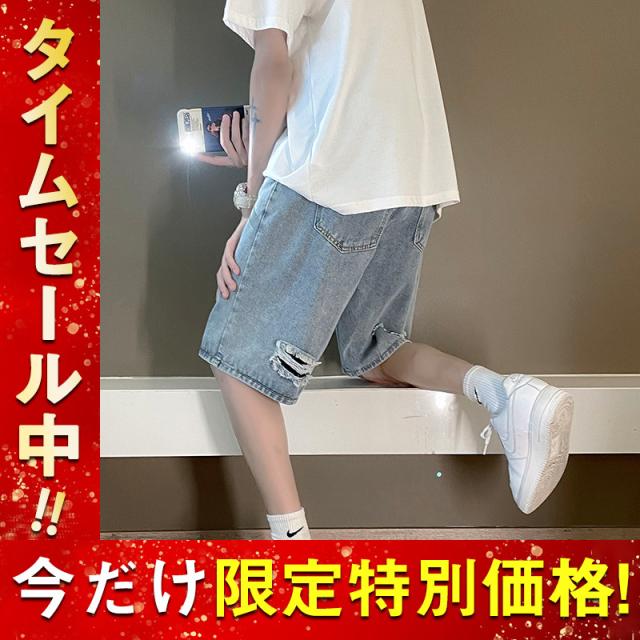 半額セール ハーフパンツ ショートパンツ メンズ デニムパンツ 五分丈 ダメージ加工 デニム ボトムス 夏 ジーンズ かっこいい