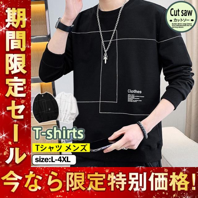 Tシャツ メンズ 長袖 春秋 ロンT カットソー 大きいサイズ 無地 tシャツ シンプル インナー トップス 秋新作 ゆったり ビ
