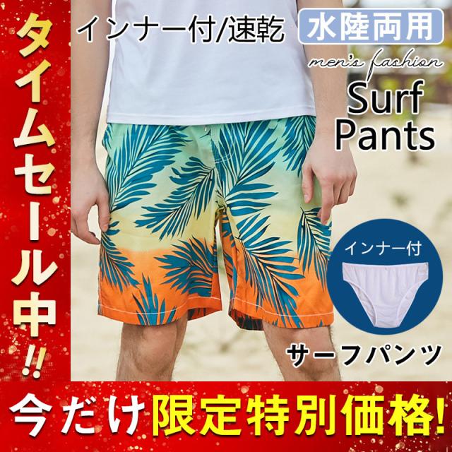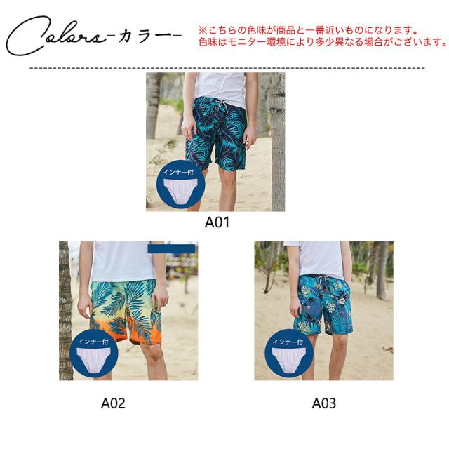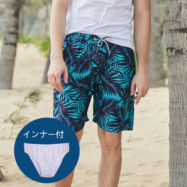 水着 メンズ サーフパンツ 花柄 水陸両用 軽量 速乾 海パン インナー付 海水パンツ ショートパンツ 無地 アロハ 夏物 短パン