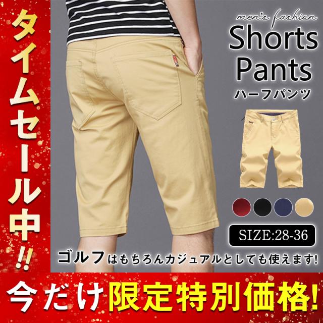ハーフパンツ メンズ ショートパンツ ゴルフウェア 夏 ストレッチパンツ 五分丈 膝下 ゴルフパンツ 半ズボン 無地 おしゃれ 春