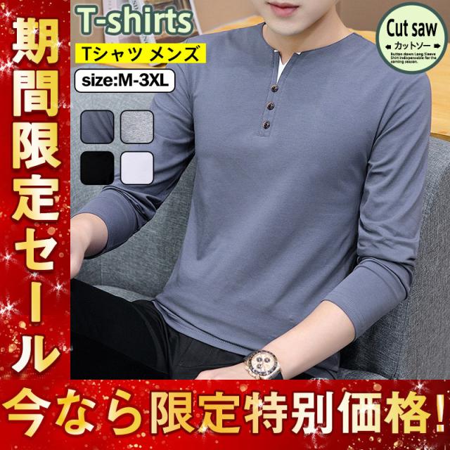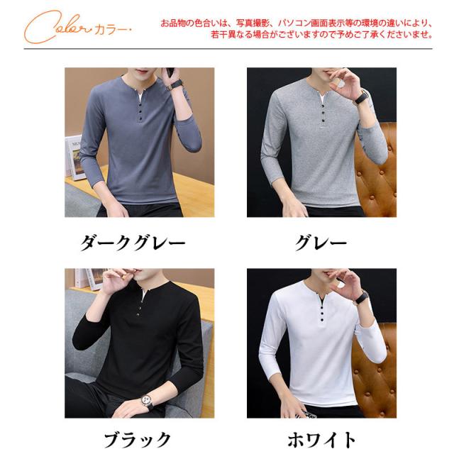 Tシャツ メンズ 長袖 春秋 ロンT カットソー Vネック 無地 tシャツ シンプル カジュアル ストレッチ インナー トップス