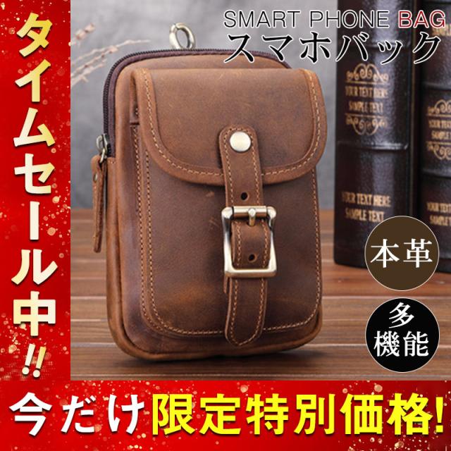 ウエストポーチ メンズ 本革 ベルトバッグ スマホポーチ カラビナ付き コンパクト 小物入れ スマホポシェット 軽量 多機能 スマホバッグ