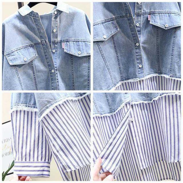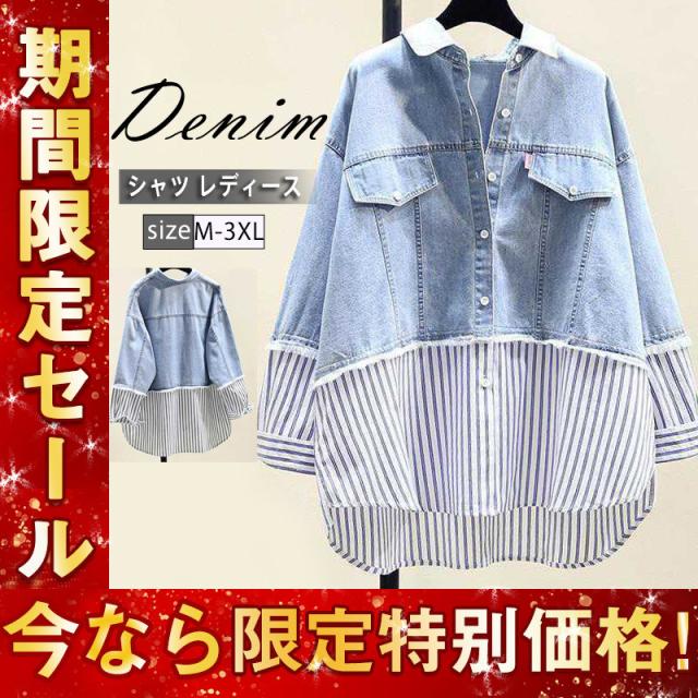 デニムシャツ レディース シャツ デニム トップス アシンメトリー ヴィンテージ 折襟 長袖 前開き 秋物 ゆったり Gジャン お