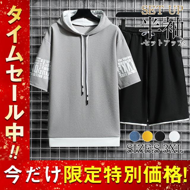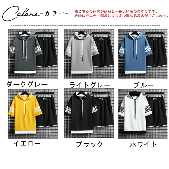 上下セット セットアップ メンズ 夏パーカー ジャージ パーカー ショートパンツ リラックスウェア 部屋着 ルームウェア 夏 スポ