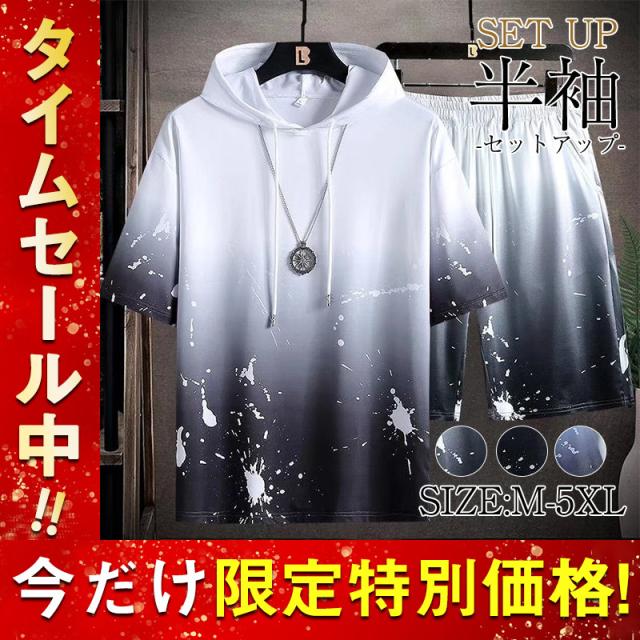 ジャージ メンズ 上下セット セットアップ 半袖パーカー グラデーション 夏 ショートパンツ 半袖パーカー 接触冷感 運動着 部屋