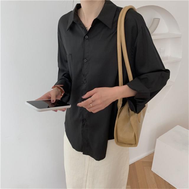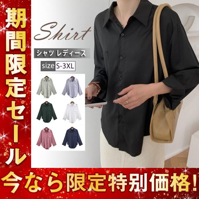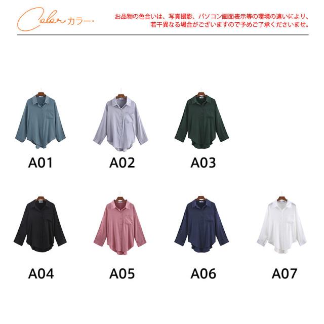 ブラウス レディース シャツ 七分袖 トップス ロング丈 体型カバー ゆったり カジュアル 無地 普段着 通勤 フォーマル 大きい
