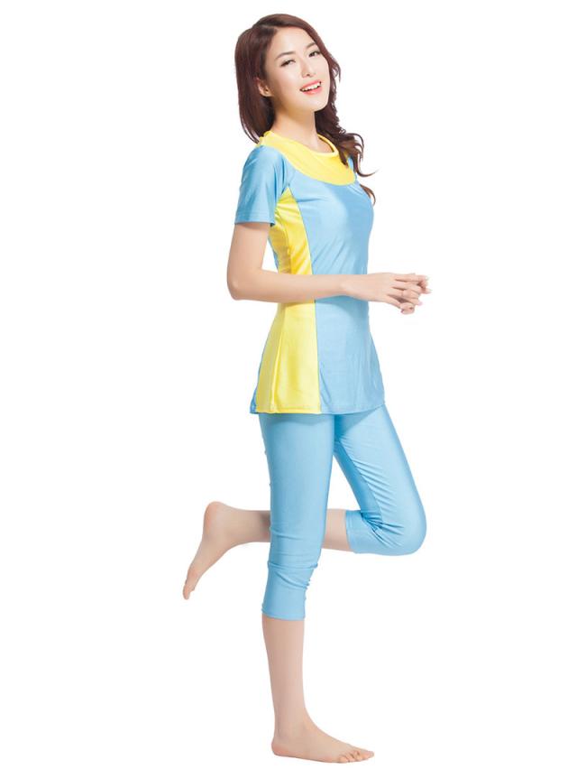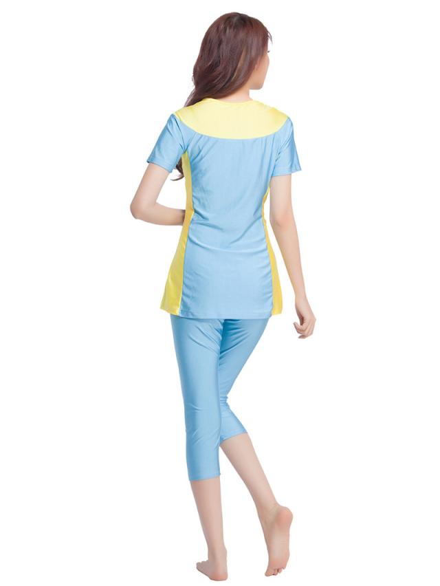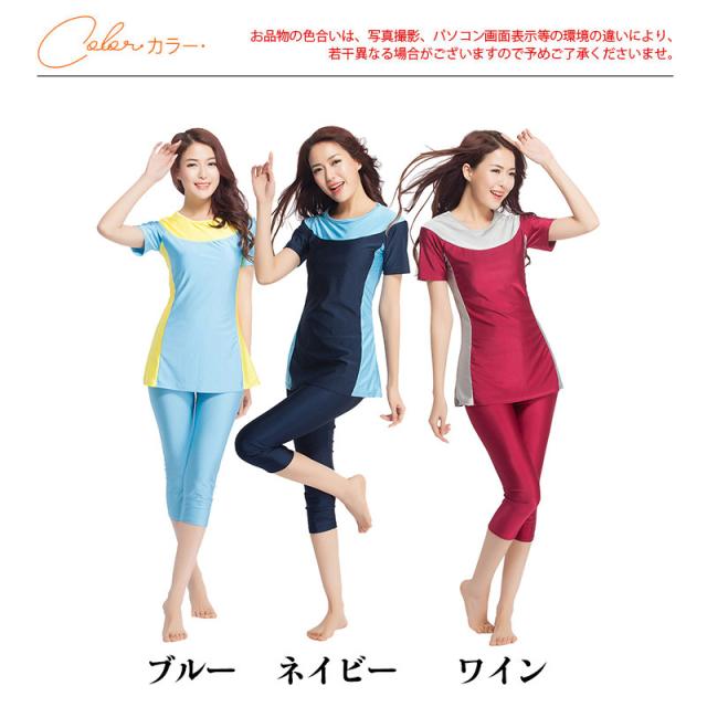 新作 水着 レディース 2点セット 水着セット フィットネス水着 練習用 半袖 七分丈 ショートバンツ リゾート 体型カバー 大き