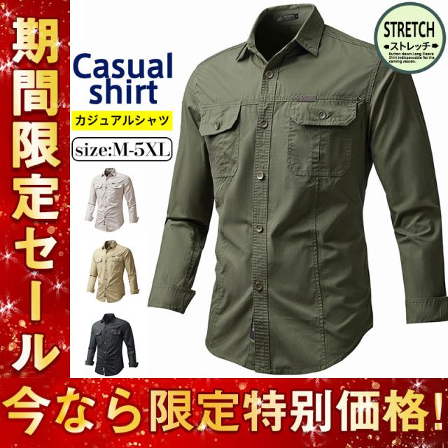 ミリタリーシャツ メンズ 長袖シャツ カジュアルシャツ ワークシャツ 開襟シャツ アウター アウトドア 春服 秋服 ゆったり 登山