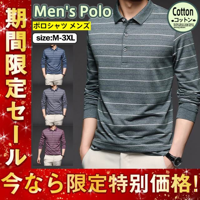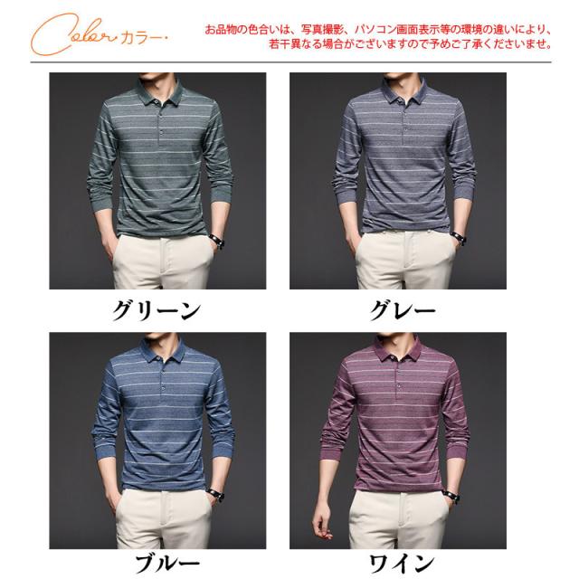 ゴルフウェア ポロシャツ メンズ Polo ボーダー柄 ゴルフシャツ 長袖ポロシャツ ビジネス ゴルフ トップス スポーツ 紳士服