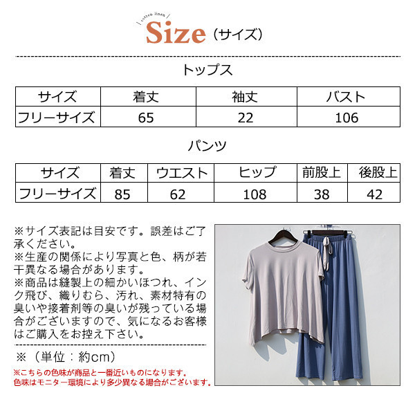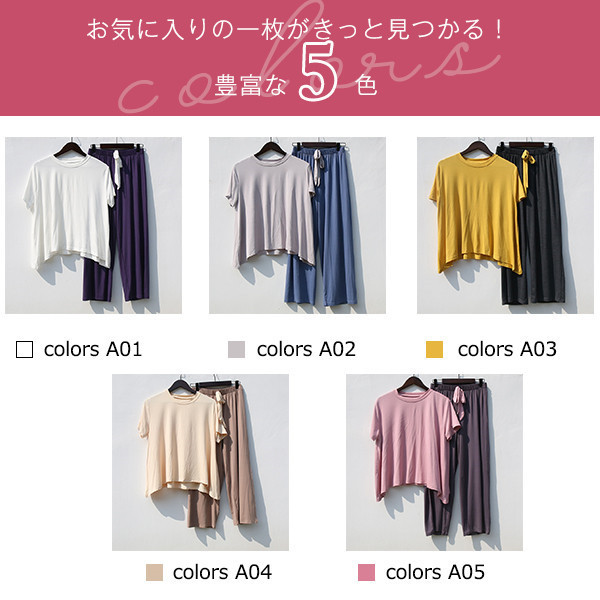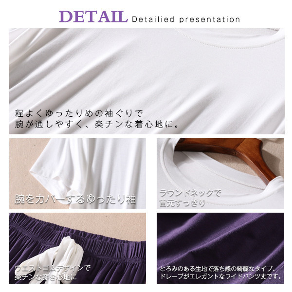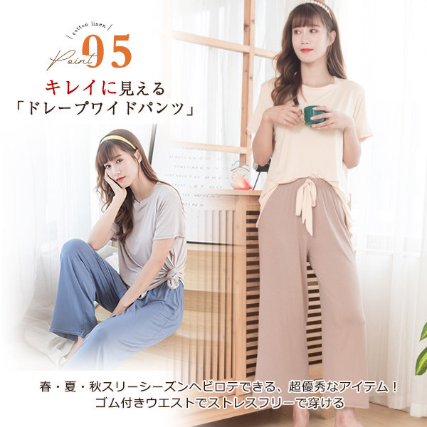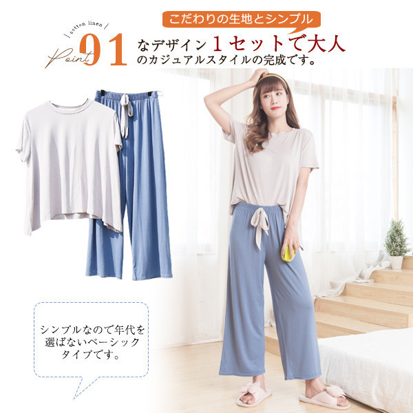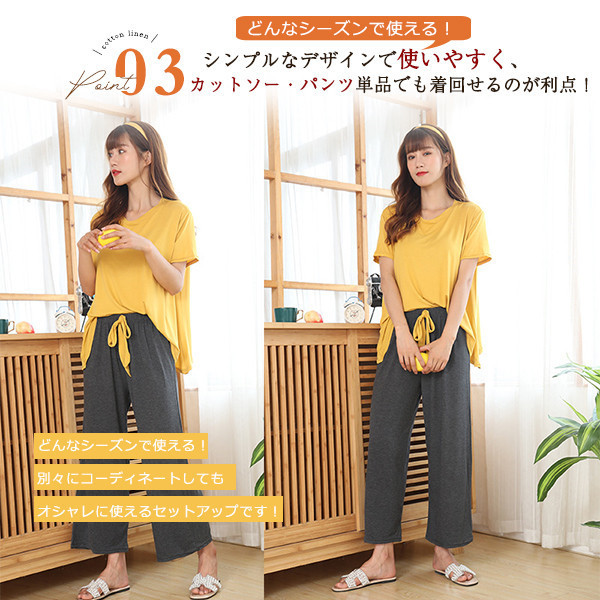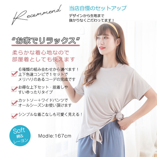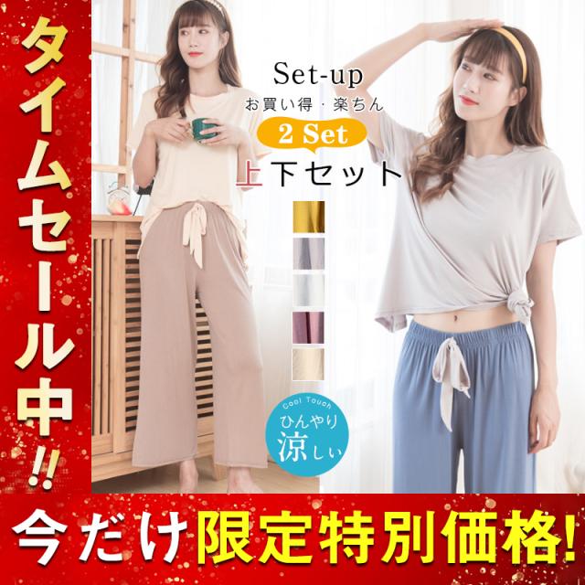 パジャマ ルームウェア セットアップ レディース 半袖 ウエストゴム 上下セット 2点セット 部屋着 寝巻き ワイドパンツ ゆった