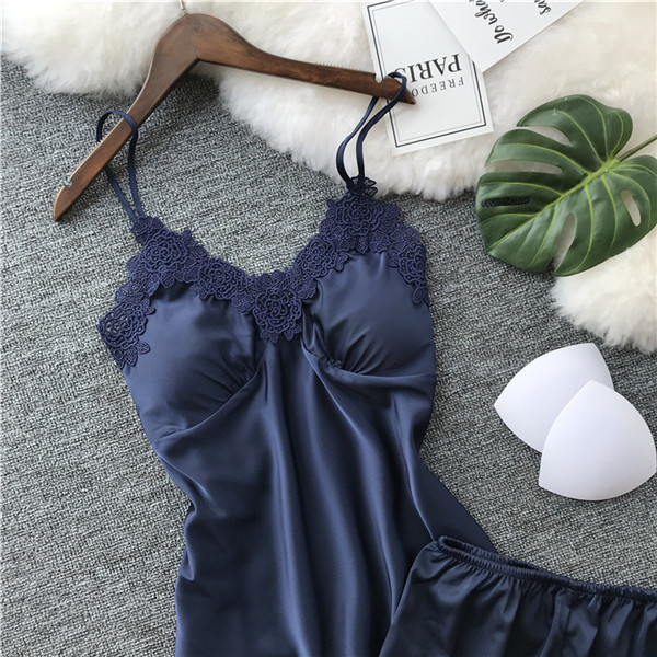 パジャマ ルームウェア セットアップ レディース キャミソール シルク レース ウエストゴム スリム セクシー 上下セット 2点セ