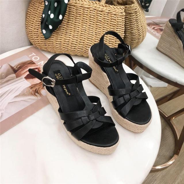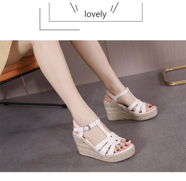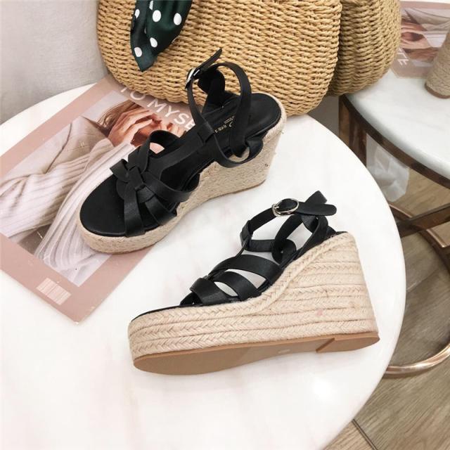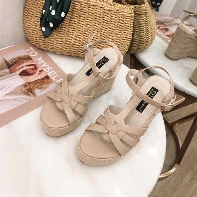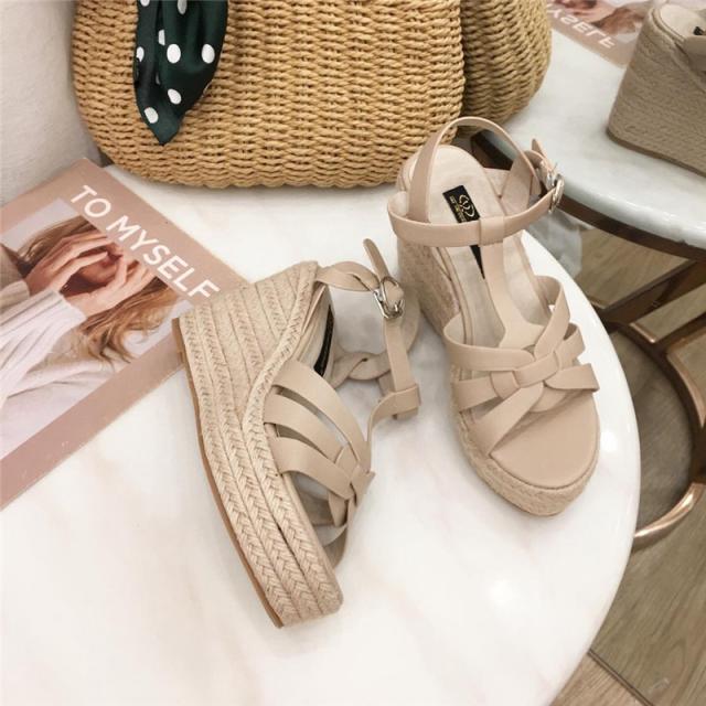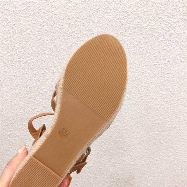 ウェッジソール レディース サンダル シューズ クロスゴムベルト 夏 ジュートサンダル 厚底 9cm ヒール サマーブーツ 疲れな