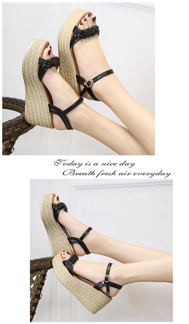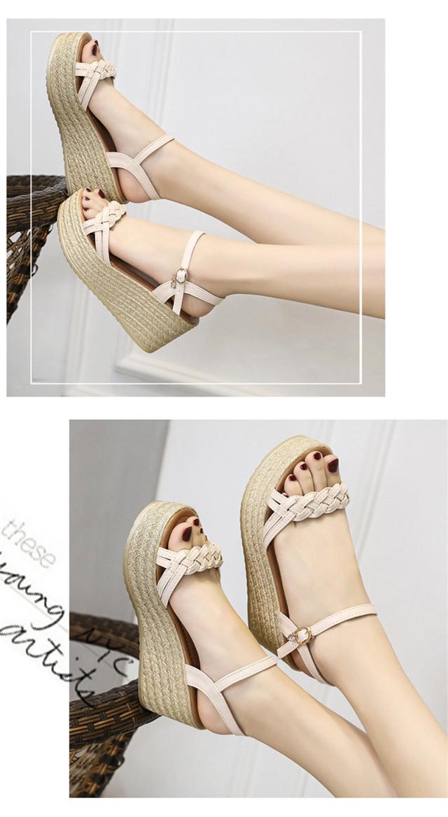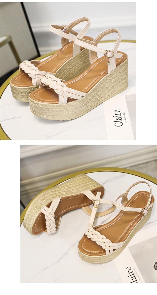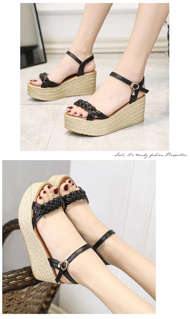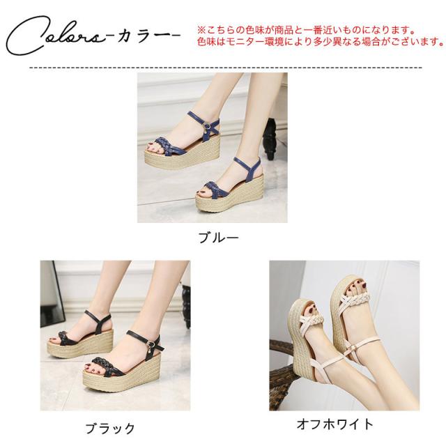 サンダル レディース シューズ 夏 ウェッジソール 走れる レザー 厚底 編込み クッション 7.5cm ヒール サマーブーツ カ