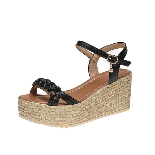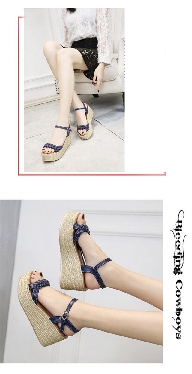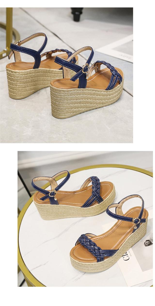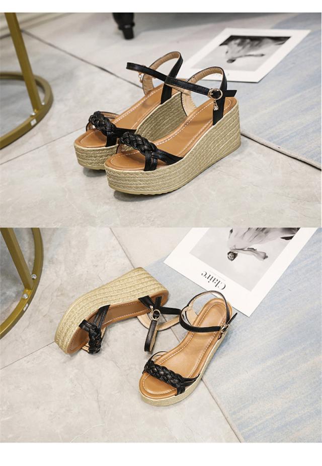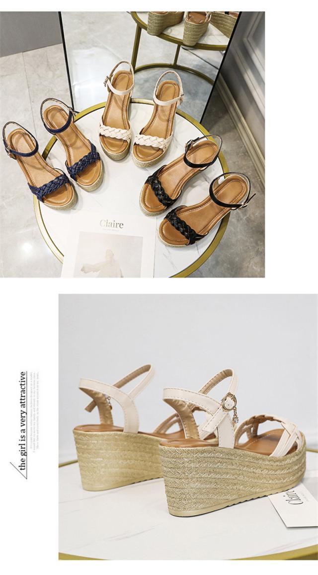 サンダル レディース シューズ 夏 ウェッジソール 走れる レザー 厚底 編込み クッション 7.5cm ヒール サマーブーツ カ