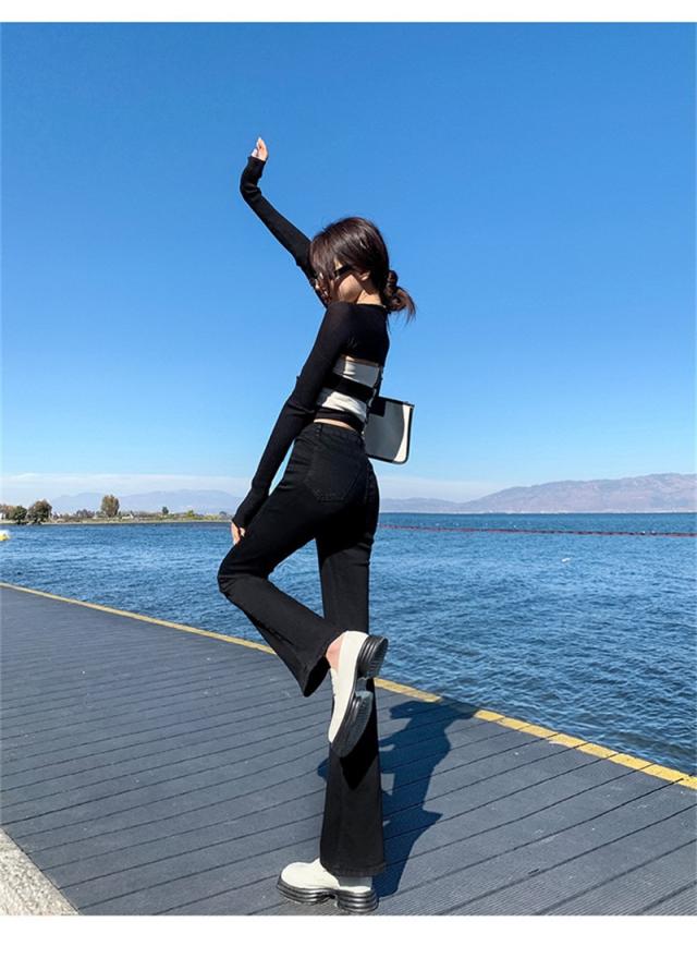 ◎脚をスラっと見せてくれる細身のフレアデニム
