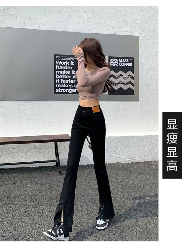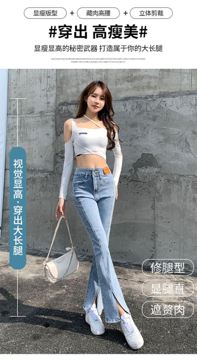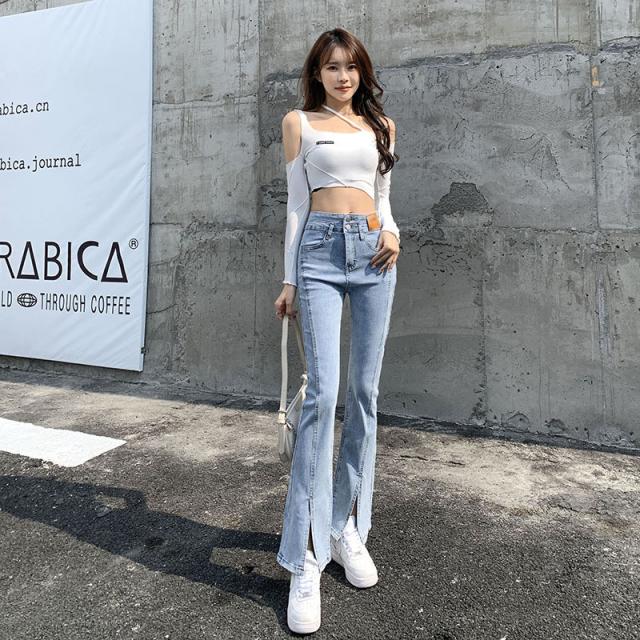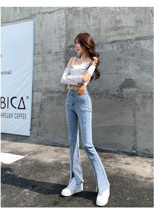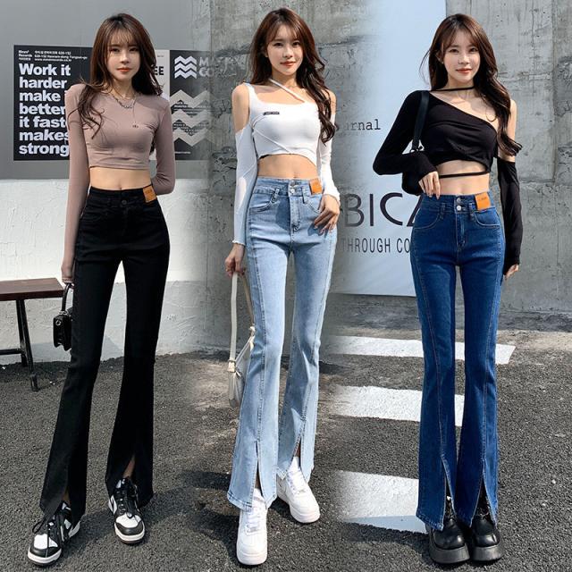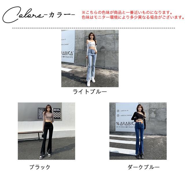 デニムパンツ レディース フレアパンツ ロングパンツ ハイウエスト 春 夏 美脚 脚長 韓国 スリム デイリーコーデ カジュアル