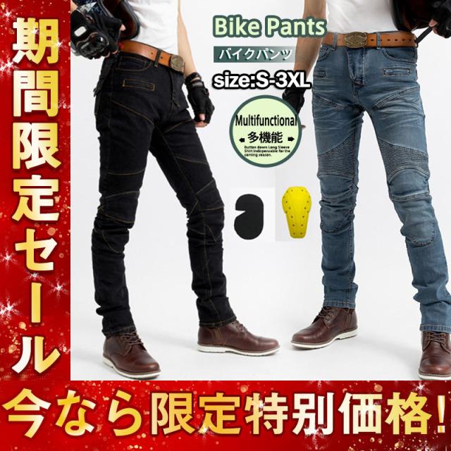 バイクパンツ メンズ ライディングパンツ デニムパンツ バイクウェア 膝パッド付き プロテクター付き ジーパン バイクジーンズ 耐