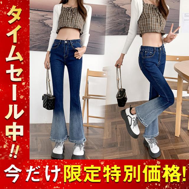 デニムパンツ レディース フレアパンツ デニム ロングパンツ ハイウエスト 美脚 脚長 細見え スリム デイリーコーデ カジュアル