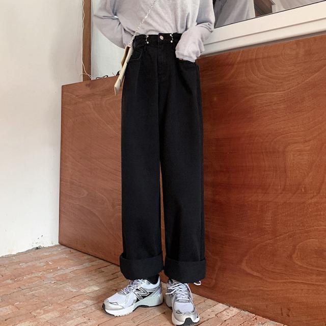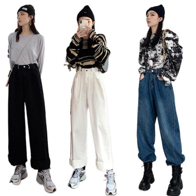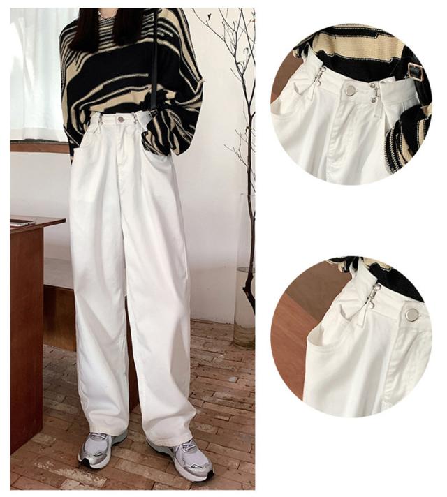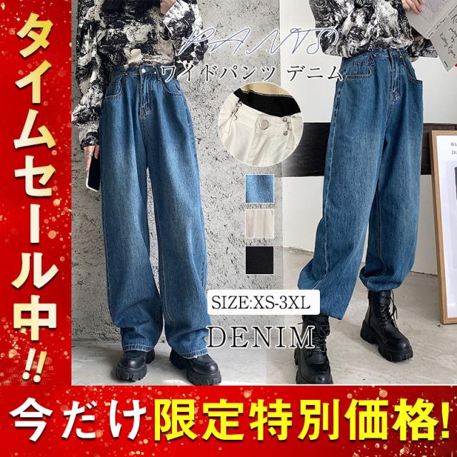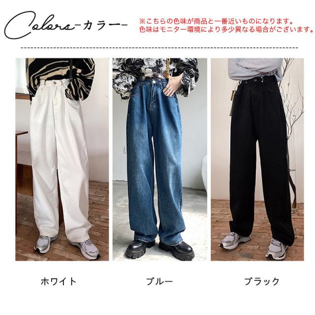 デニムパンツ レディース ワイドパンツ ハイウエスト ボトムス 着やせ ジーンズ ロングパンツ ワイドストレート ウエスト調節可