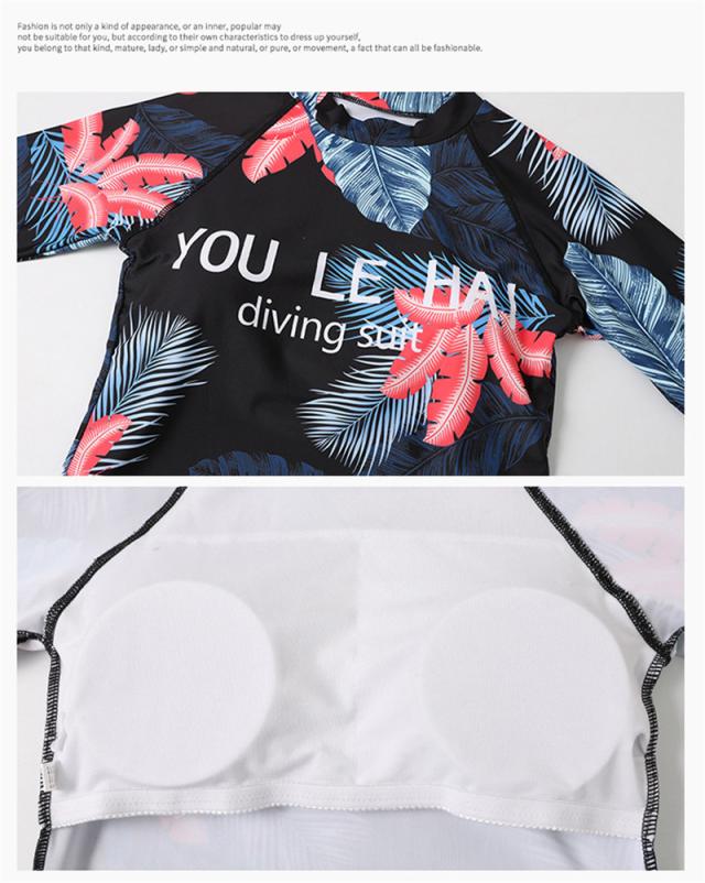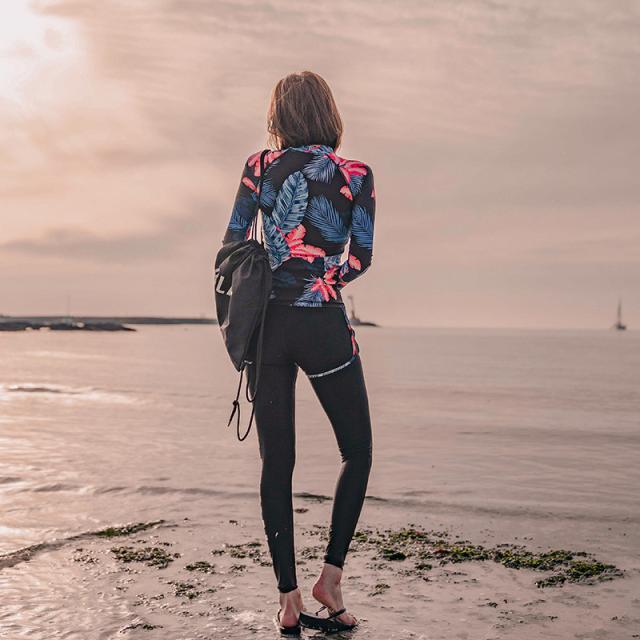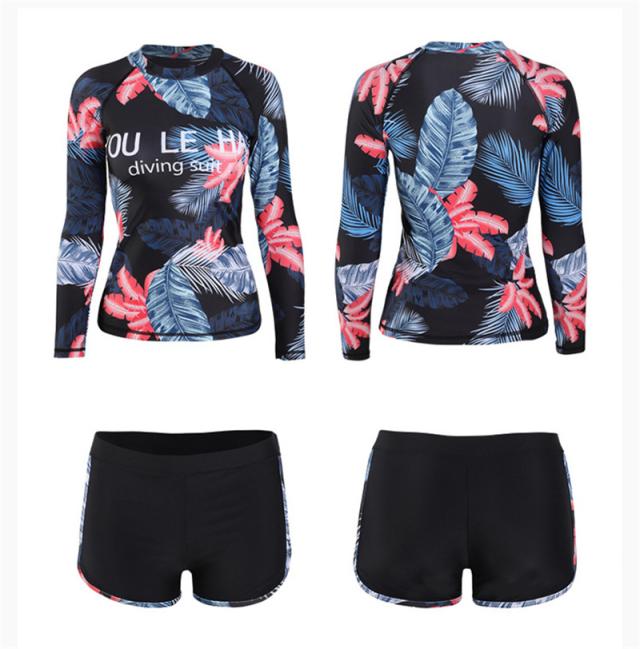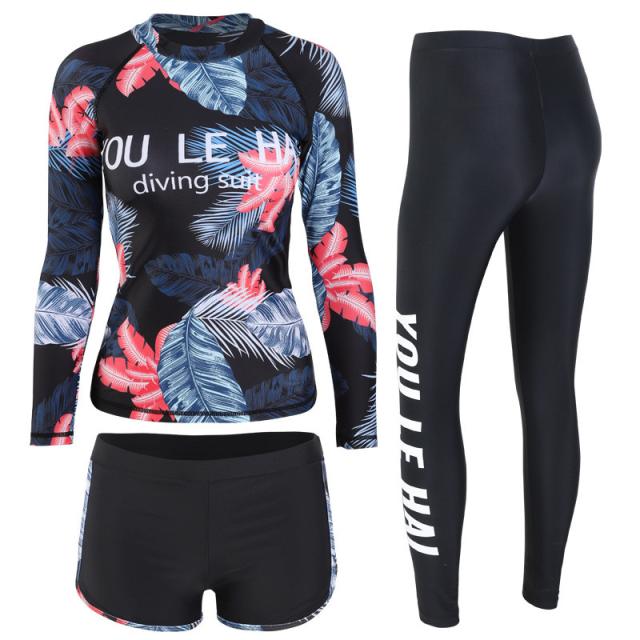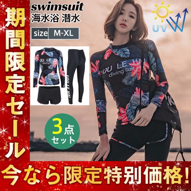 フィットネス水着 レディース 3点セット 総柄 レギンス 長袖 ラッシュパーカー 体型カバー 競泳水着 練習用 海外旅行 めくれ防