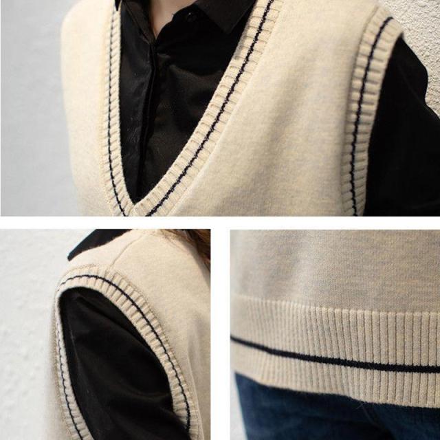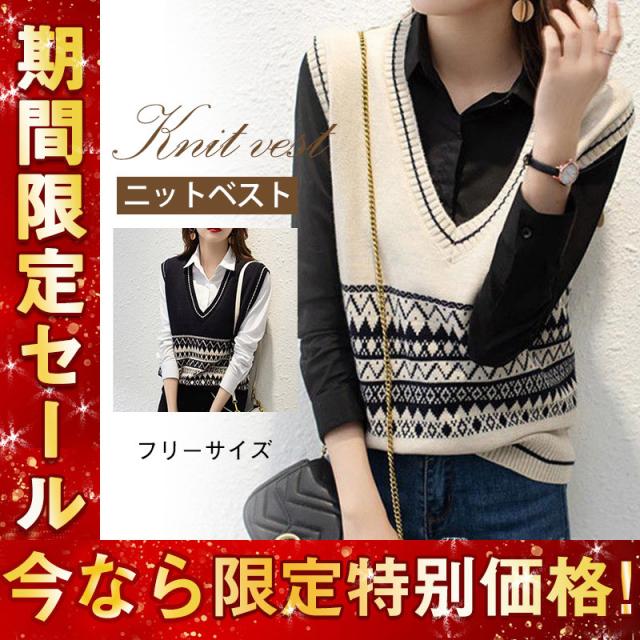 送料無料 ニットベスト レディース ニットタンクトップ チョッキ トップス Vネック ノースリーブ ゆったり プルオーバー ベスト