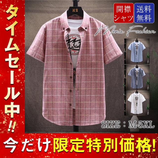 カジュアルシャツ メンズ 半袖シャツ チェック柄 開襟シャツ ミリタリー 羽織 通勤 通学 おしゃれ 夏服 お兄系 ゆったり 体