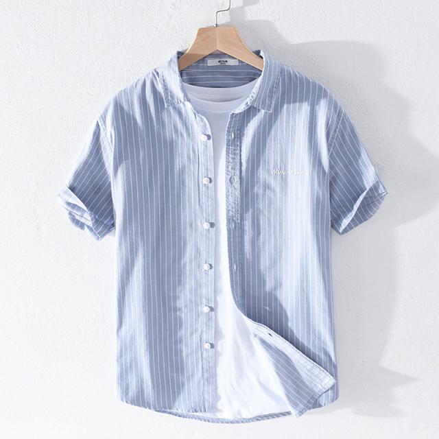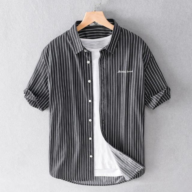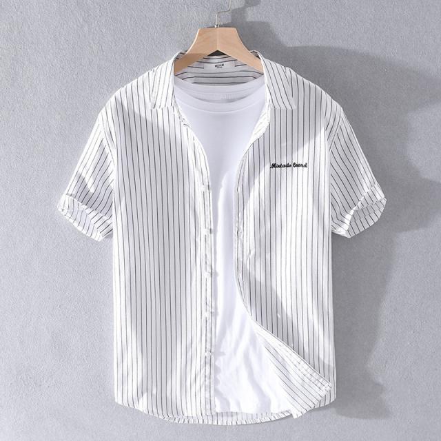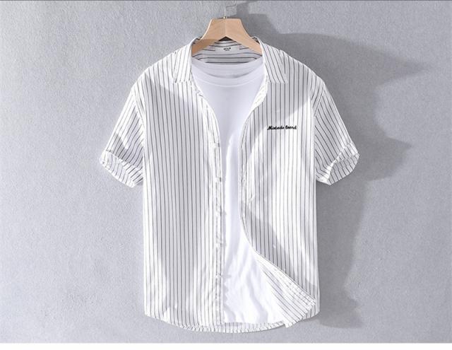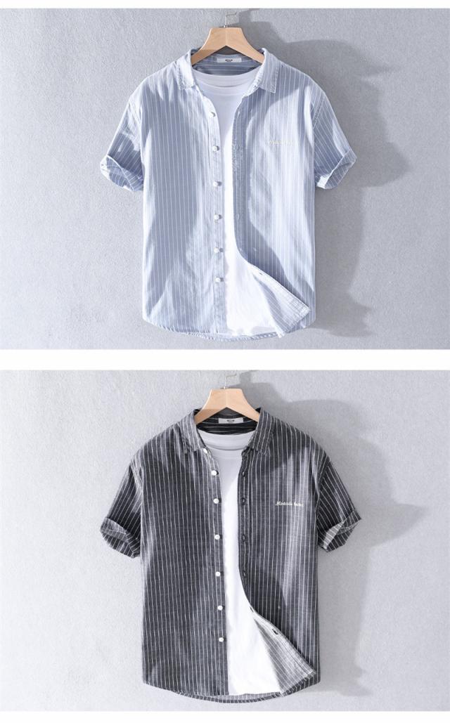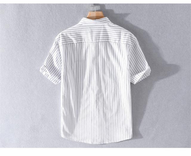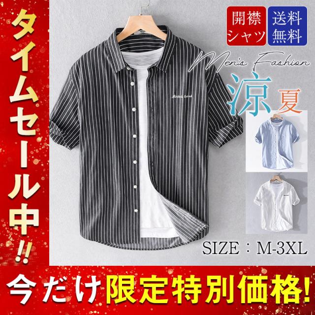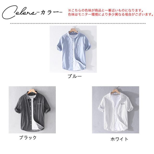 半袖シャツ カジュアルシャツ メンズ ストライプ柄 リネン 綿麻 トップス 無地 ビジネス 開襟シャツ 羽織 通勤 通学 夏服 ゆ