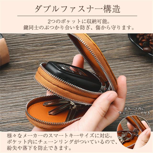 激安セール スマートキー キーケース ダブルファスナー スマートキーカバー 本革 牛革 メンズ キーリング レザー 車 鍵 収納