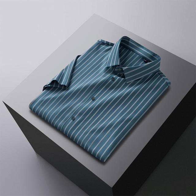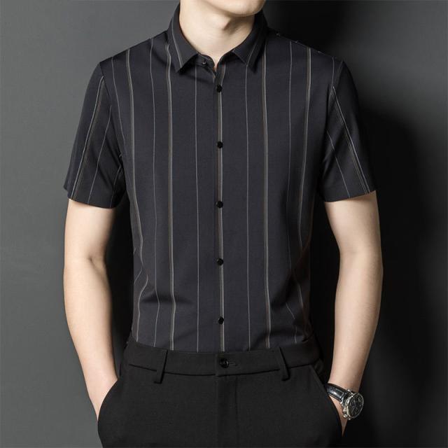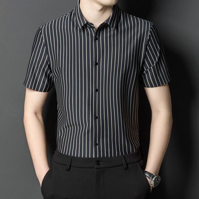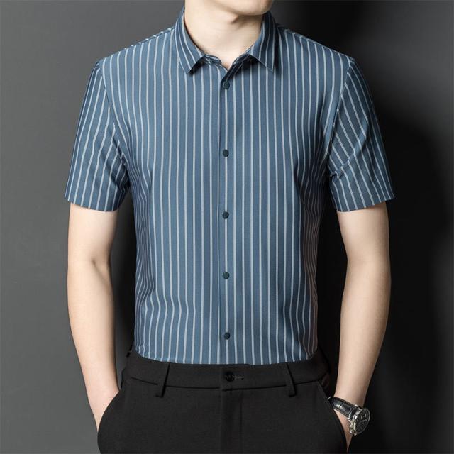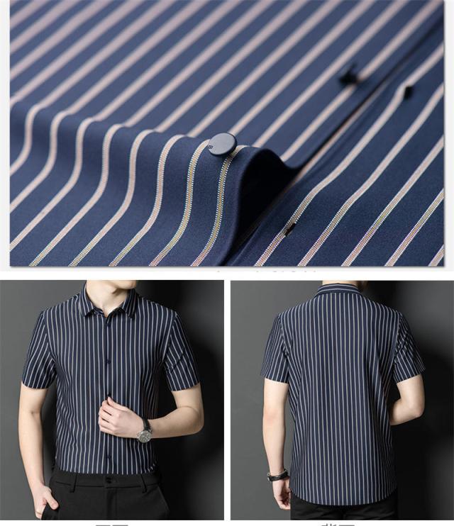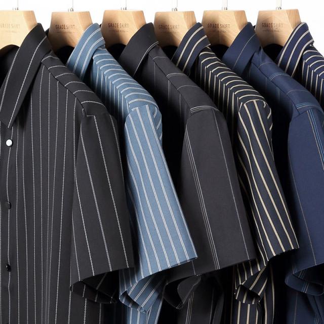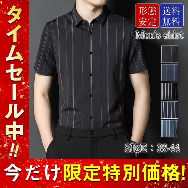 ワイシャツ メンズ 半袖 シャツ 細身 ビジネス ストライプ トップス 開襟シャツ 涼しい フォーマル OL 通勤 紳士服 形態安
