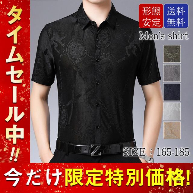 ワイシャツ メンズ 半袖 シャツ 細身 スリム ビジネス トップス 開襟シャツ フォーマル OL 通勤 紳士服 ビジネスマン 紳士