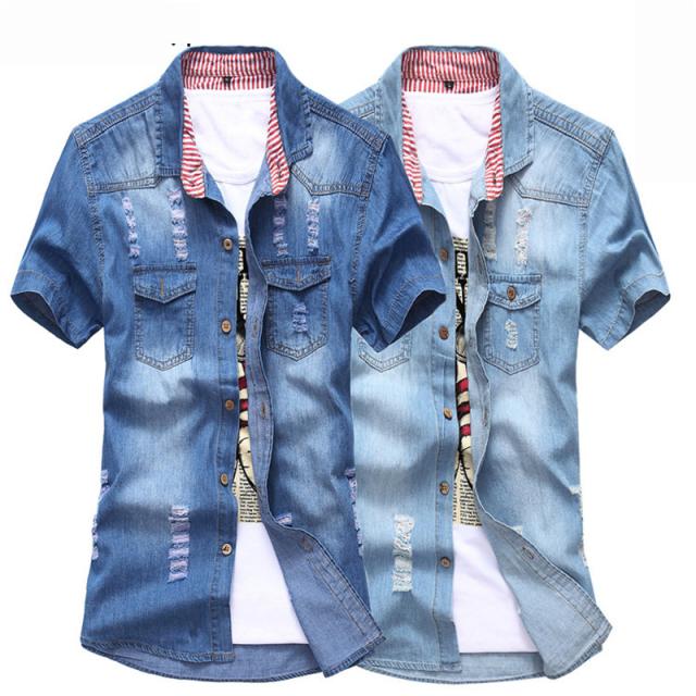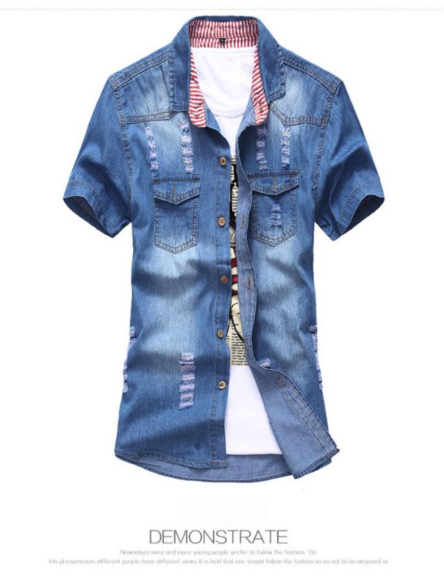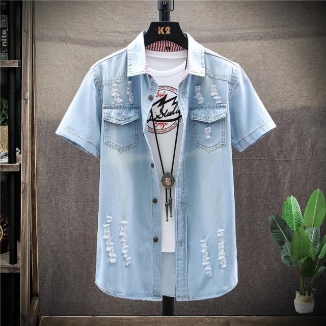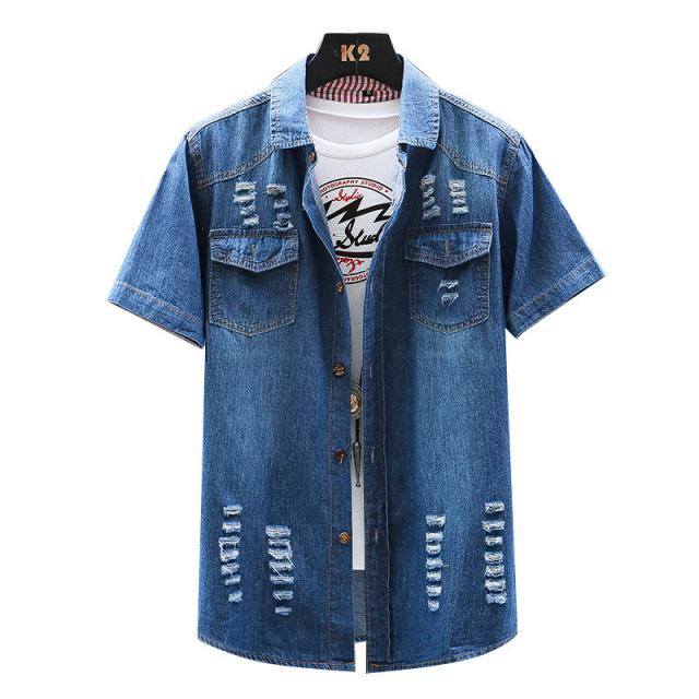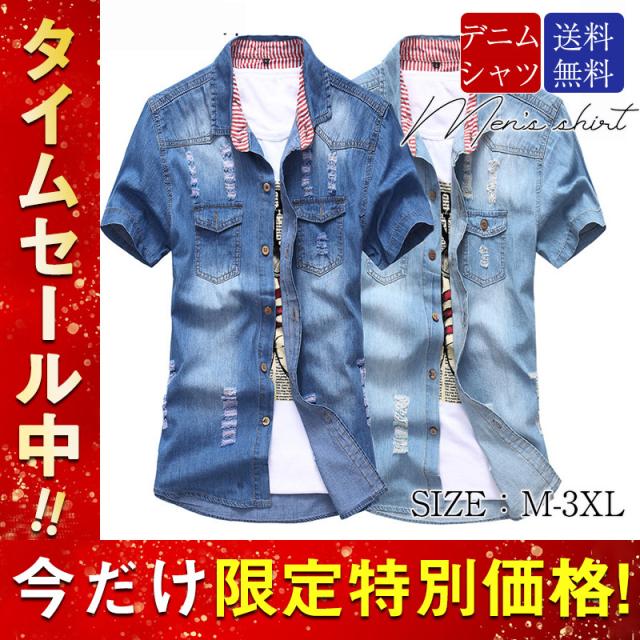 高品質加工 デニムシャツ メンズ カジュアルシャツ 半袖 七分袖 5分袖 無地 通学 通勤 トップス ダンガリー ウエスタン ウエスタンシャツ 開襟 メンズファッション 男性用 20代 30代 40代 50代 ビジネスシャツ 大きいサイズ ダメージ スリム ストレッチ ゆったり インディゴ ジージャン 紳士服